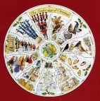 "Cumulative" game poem first published in England, 1780, set to music by British composer Frederic Austin(1872-1952)drawing upon a traditional folk tune. The 12 days of Christmas start with Christmas Day extending to Twelfth Night, the eve of Epiphany, January 6th.